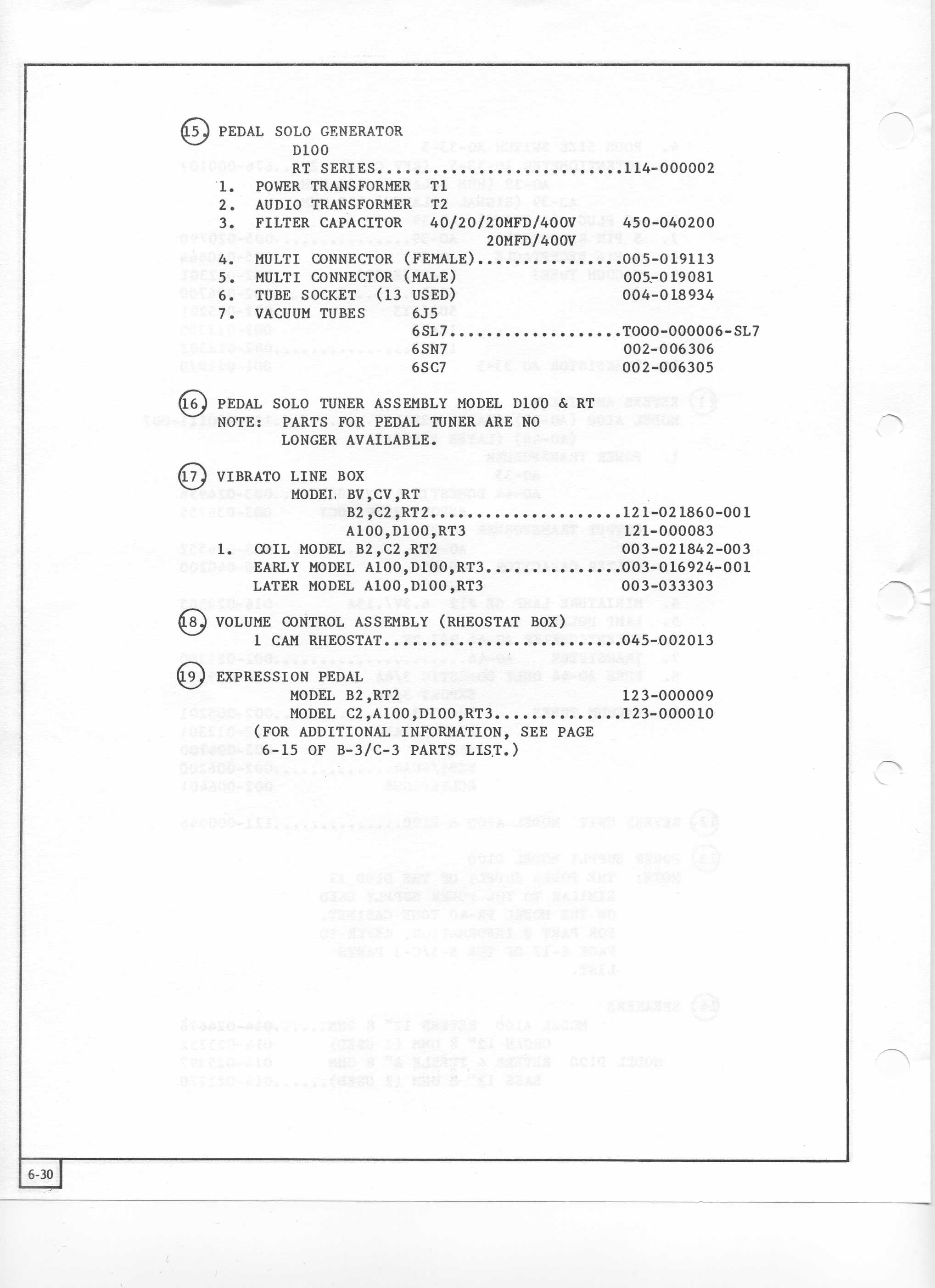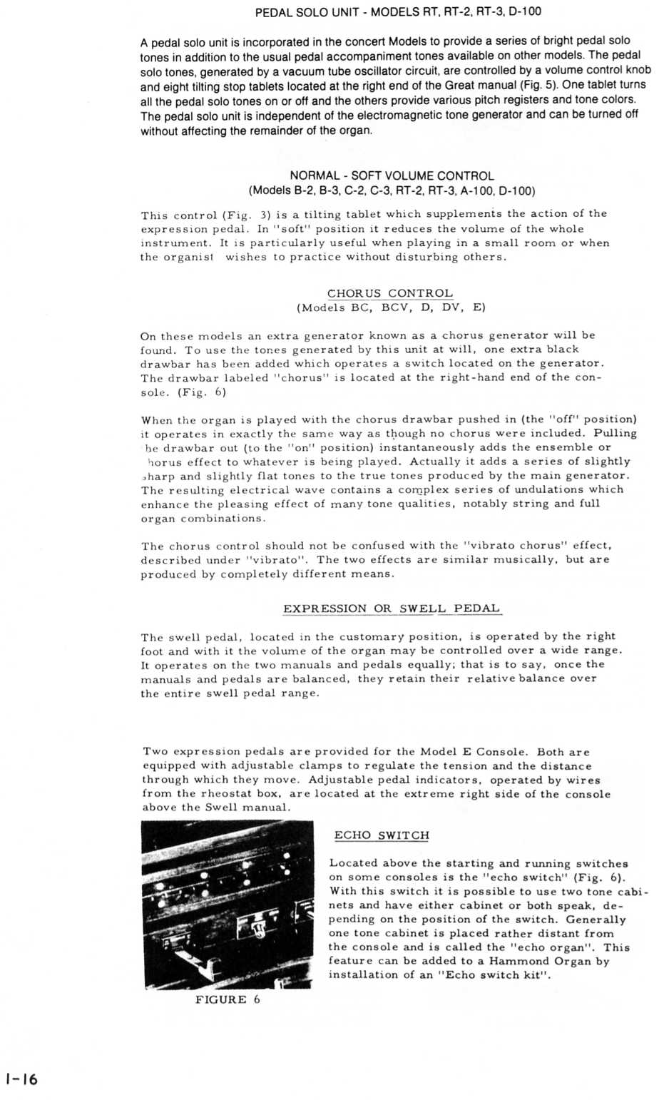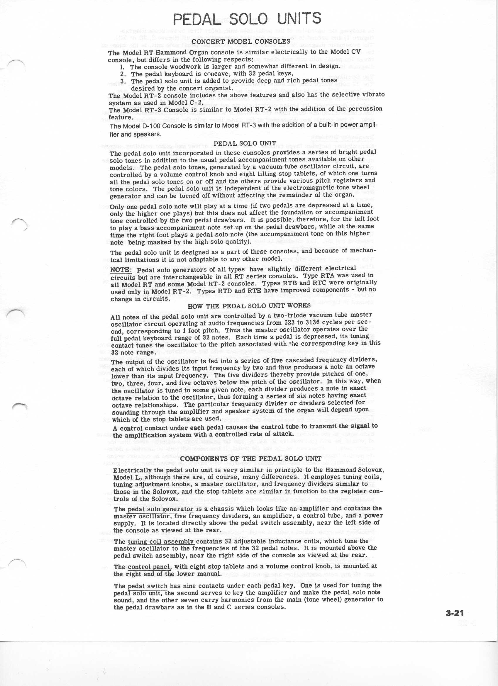 Model A-100 Models BV, CV Models C-2G Models B2 & C2 Models B-3 & C-3 Models D-100 Model E Model RT Model RT-2 Model RT-3 PEDAL SOLO UNIT (thumbnails 10) General 3-21