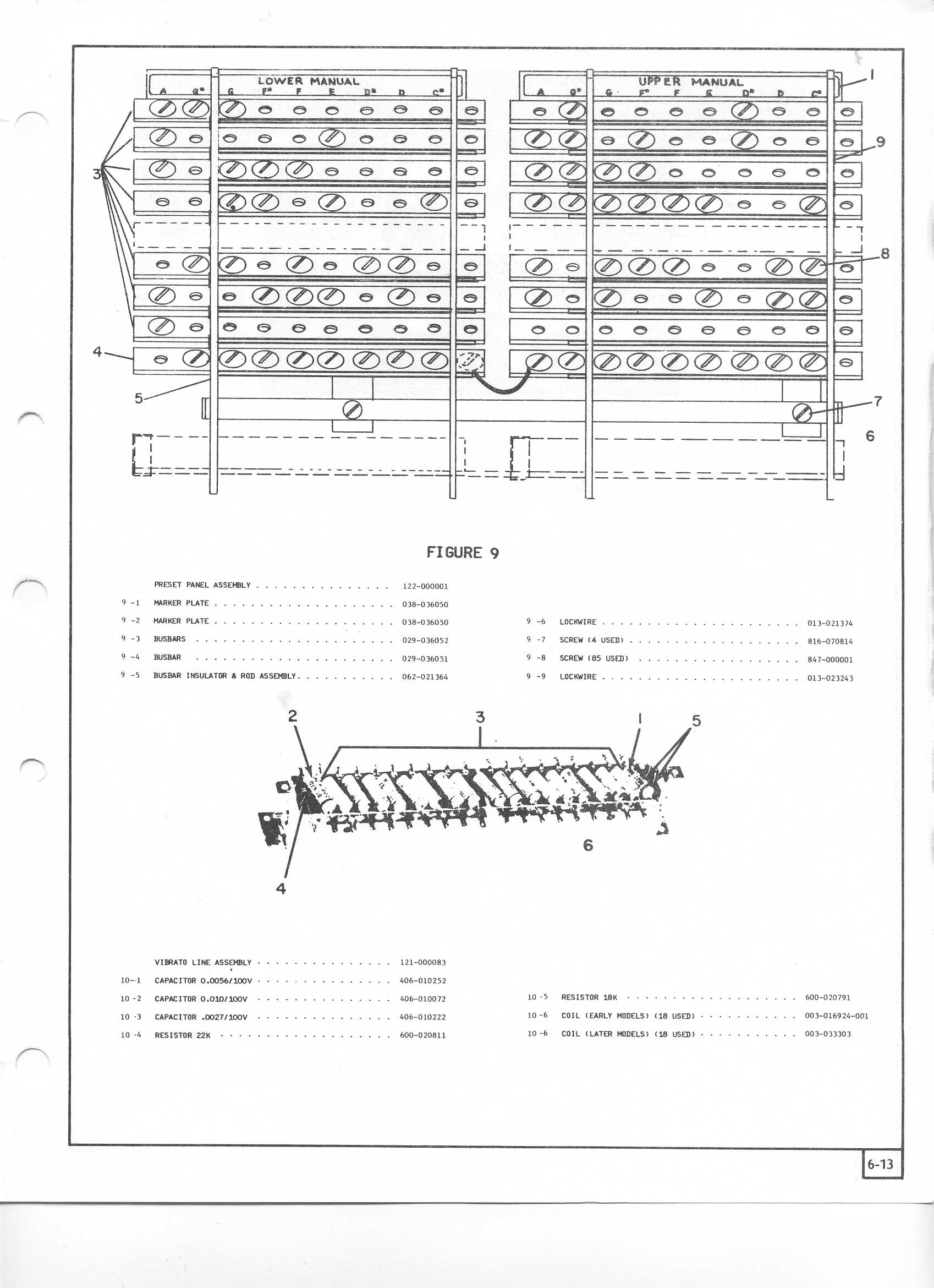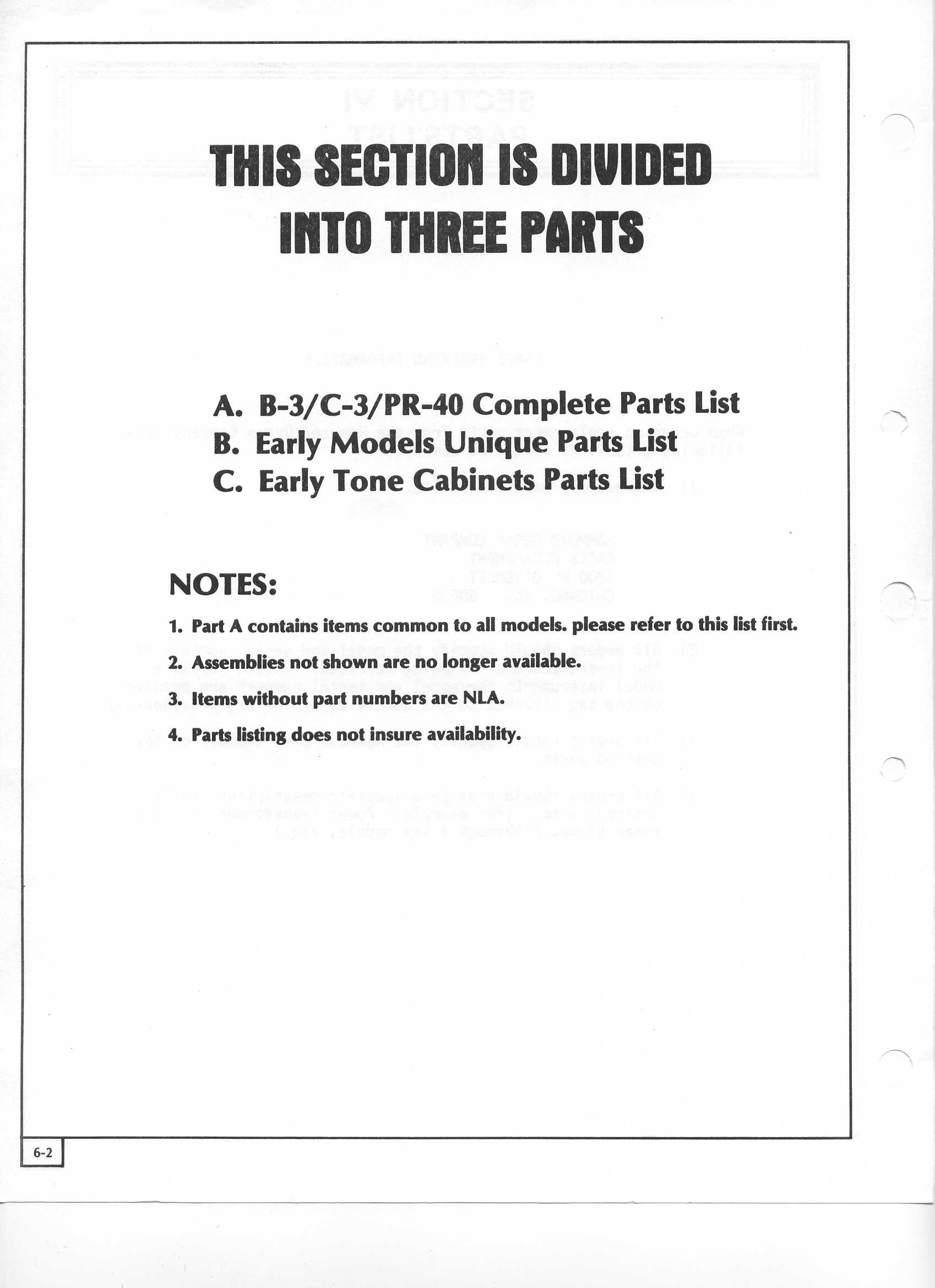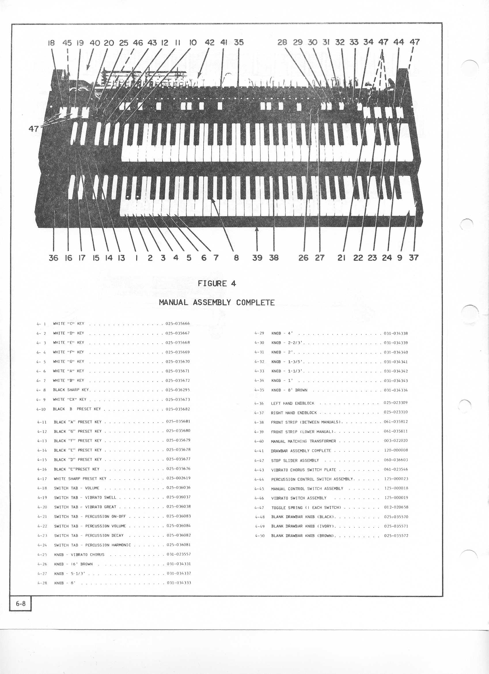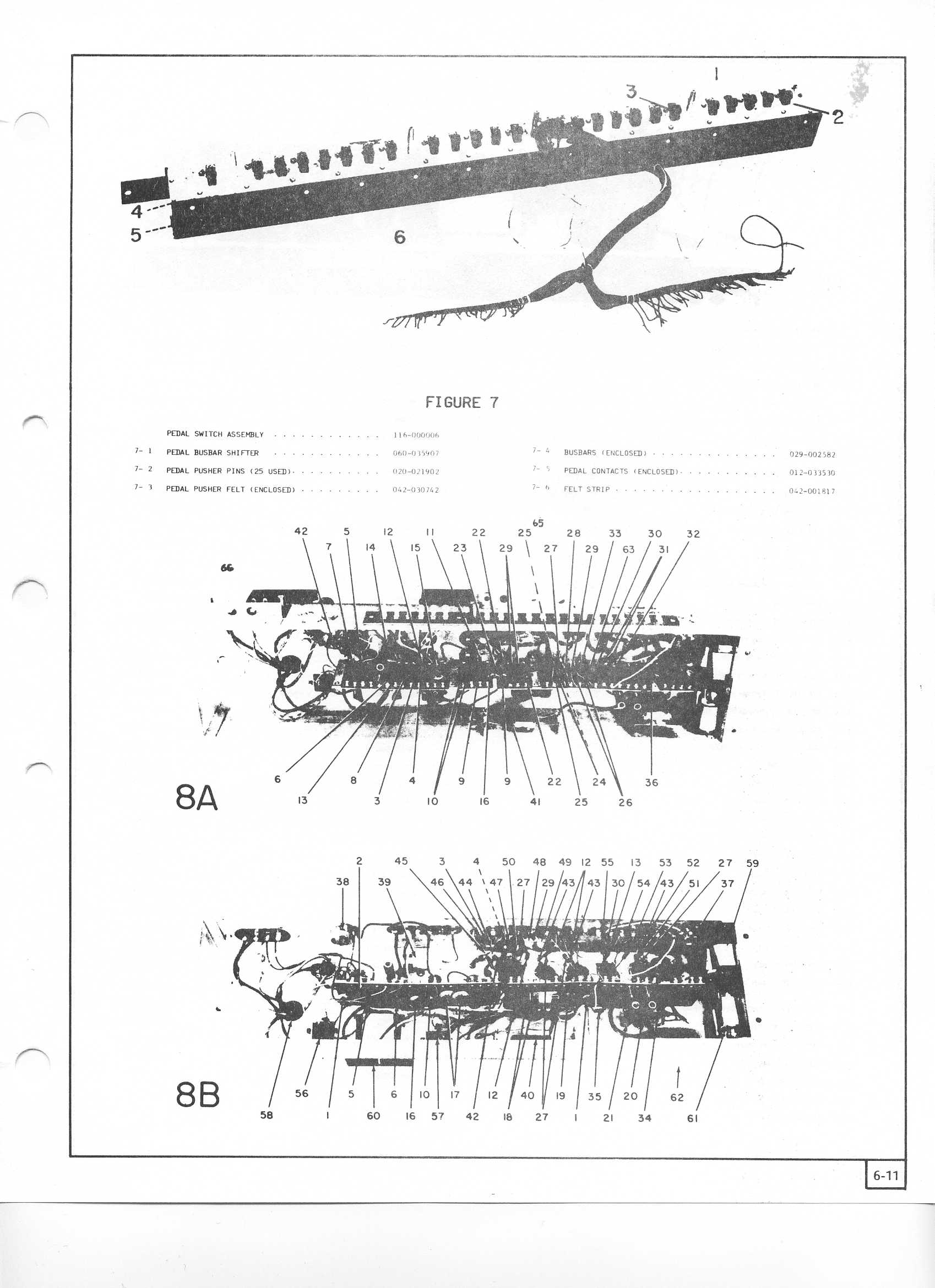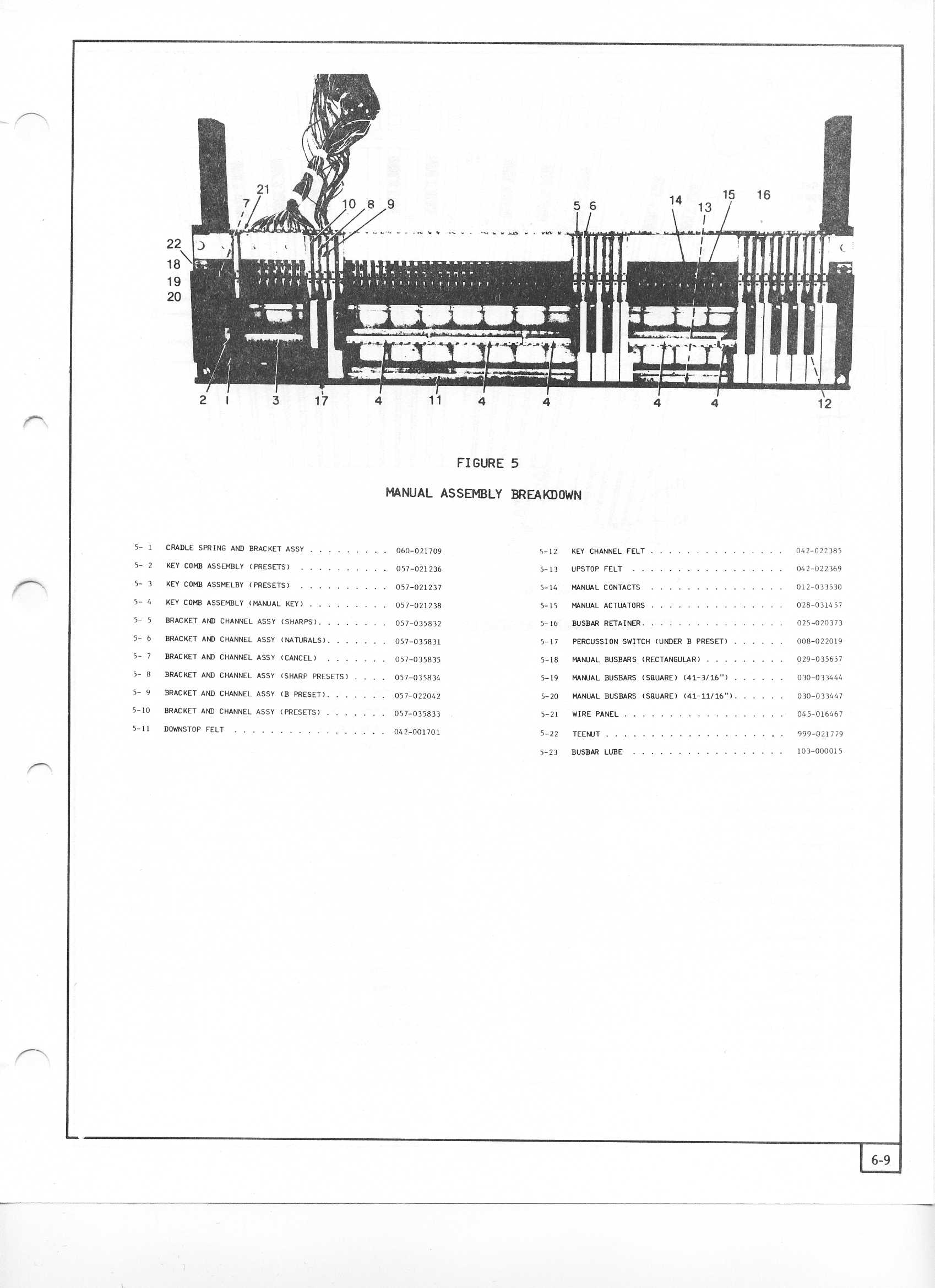 Manual Chassis Models A, AV, B, BA, BC, C, CV, D, DV, G, GV, RT 2-17 Key Contact Spring (Figure 2) 2-17 Manual Contacts (Figure 3) 2-17 Manual Chassis Models B-2, C-2, RT-2 Models B-3, C-3, RT-3, A-100, D-100 Model E 2-18 (manquante) Manual Wiring Models A, AV, B, BA, BC, BCV, C, CV, D, DV, E, G, GV, RT 2-19 Models B-2, B-3, C-2, C-3, RT-2, RT-3, A-100, D-100 2-19 Model M Series 2-19 Key & Frequecy Chart (Figure 4) 2-19 Pedal Switch Assembly (Figure 5) 2-20 Pedal Circuits (Figure 8 thru 12) 2-21, 2-22 Pedal Switch Assembly RT-1, 2, 3 & D-100 2-22A Pedal Circuits 2-22B, 2-22C Pedal Keyboard 2-22D Models RT, RT-2, RT-3 & D-100 2-23 Model E Pedal & Frequency Chart (Figure 13) 2-23 Pedal Keyboard (Figure 14) 2-24 PRESET PANELS Model A, AV, B, BA, BC, BCV, BV,