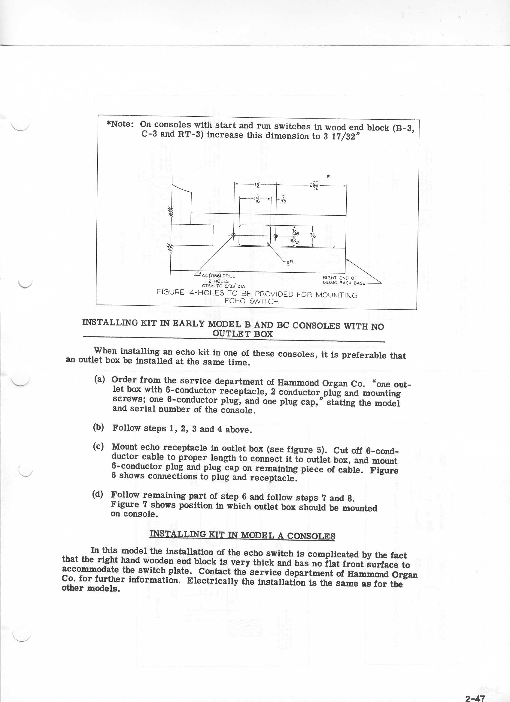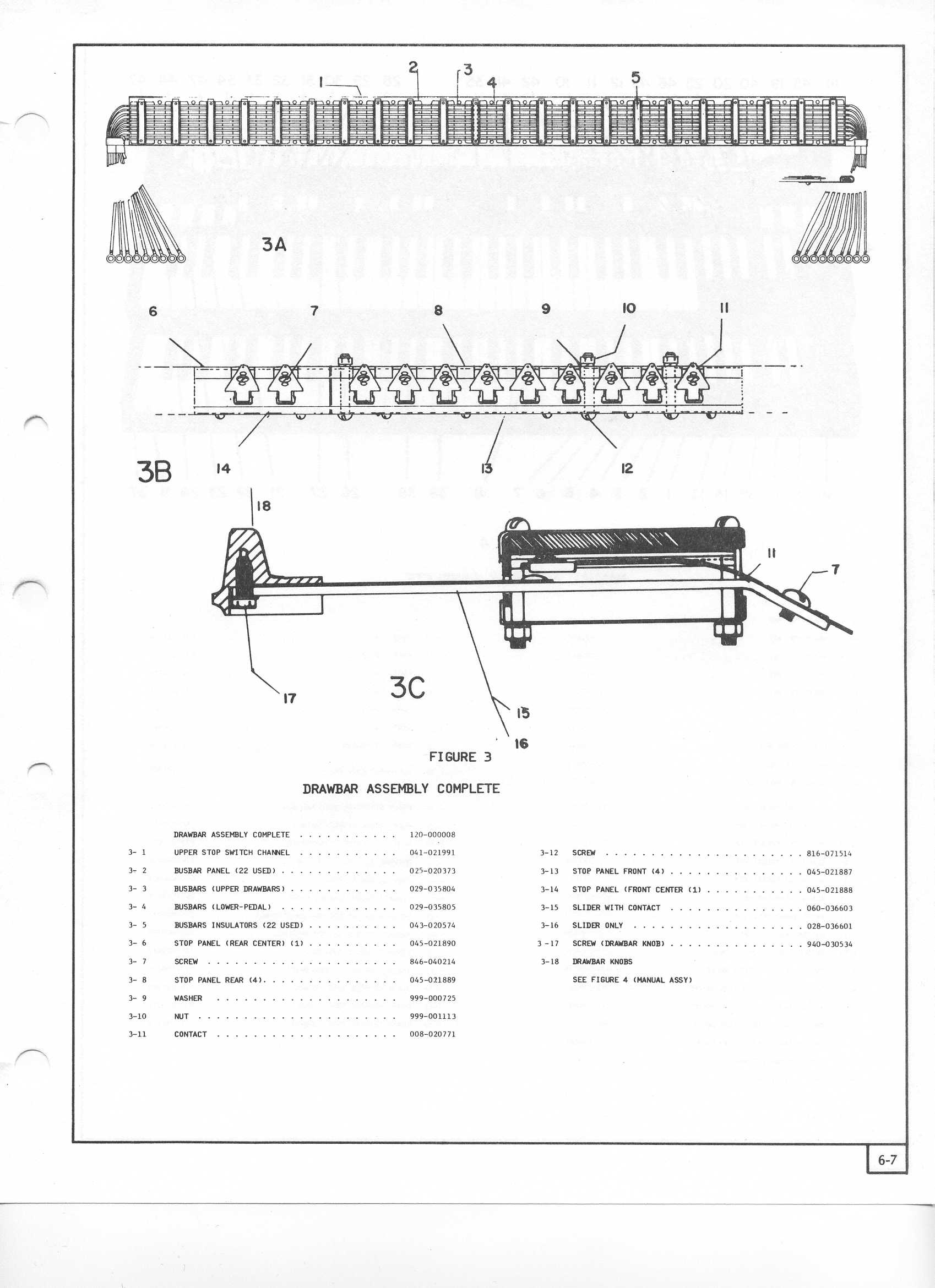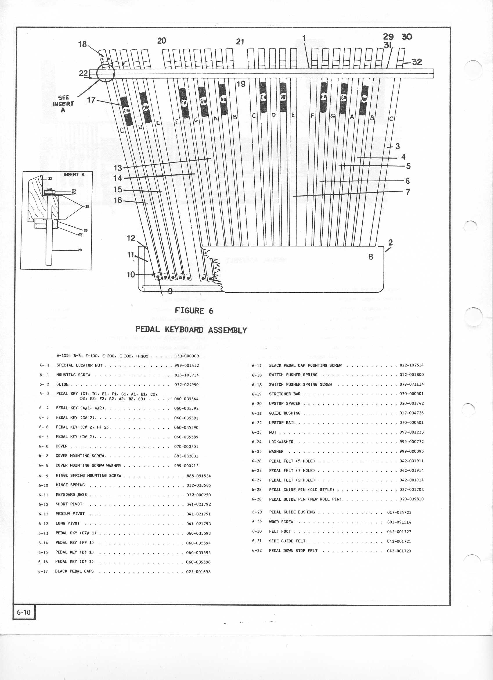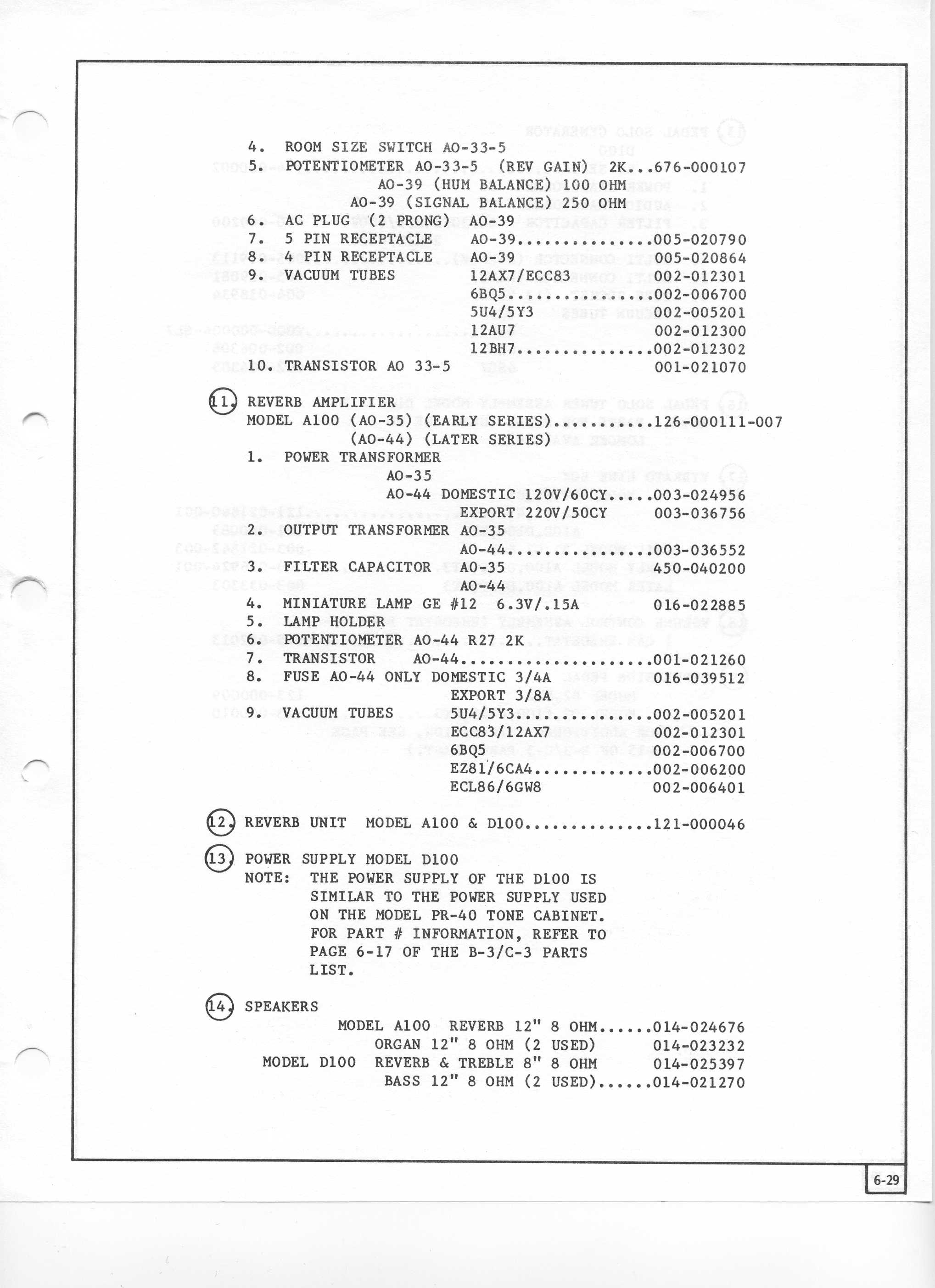 Manual Chassis Models A, AV, B, BA, BC, C, CV, D, DV, G, GV, RT 2-17 Key Contact Spring (Figure 2) 2-17 Manual Contacts (Figure 3) 2-17 Manual Chassis Models B-2, C-2, RT-2 Models B-3, C-3, RT-3, A-100, D-100 Model E 2-18 (manquante) Manual Wiring Models A, AV, B, BA, BC, BCV, C, CV, D, DV, E, G, GV, RT 2-19 Models B-2, B-3, C-2, C-3, RT-2, RT-3, A-100, D-100 2-19 Model M Series 2-19 Key & Frequecy Chart (Figure 4) 2-19 Pedal Switch Assembly (Figure 5) 2-20 Pedal Circuits (Figure 8 thru 12) 2-21, 2-22 Pedal Switch Assembly RT-1, 2, 3 & D-100 2-22A Pedal Circuits 2-22B, 2-22C Pedal Keyboard 2-22D Models RT, RT-2, RT-3 & D-100 2-23 Model E Pedal & Frequency Chart (Figure 13) 2-23 Pedal Keyboard (Figure 14) 2-24 PRESET PANELS Model A, AV, B, BA, BC, BCV, BV,
