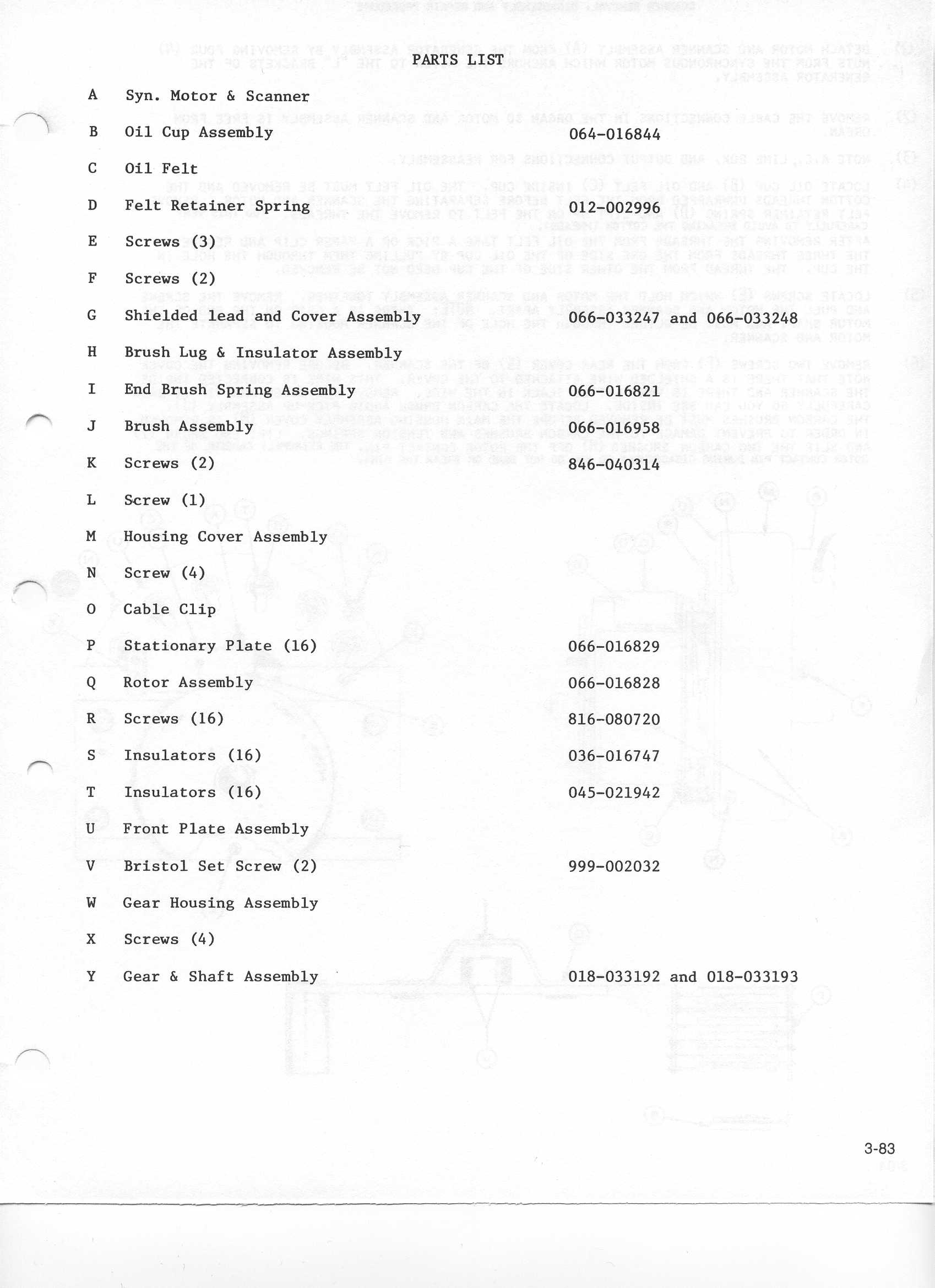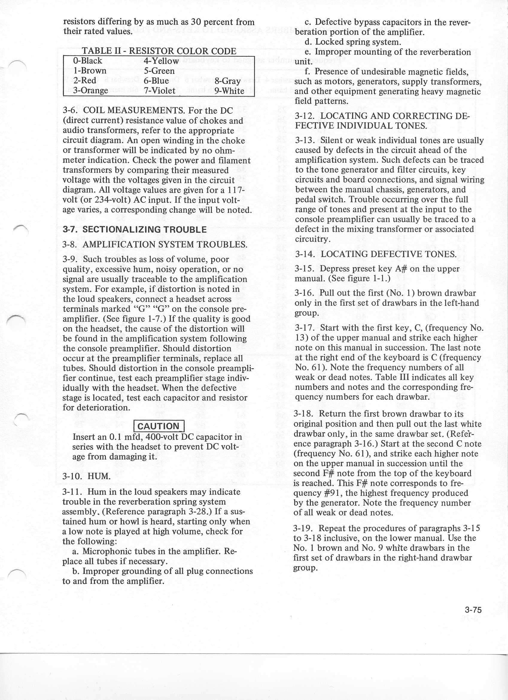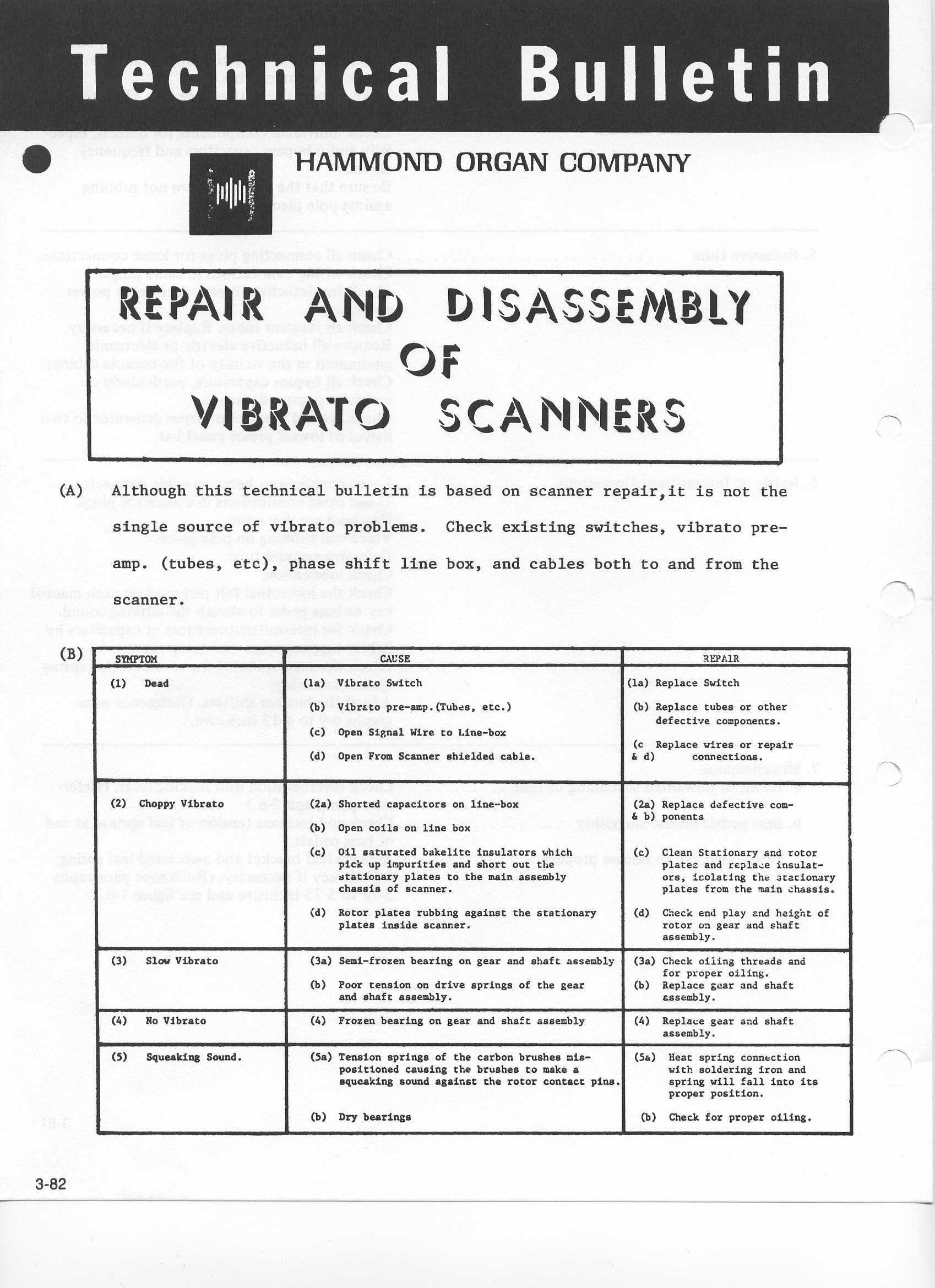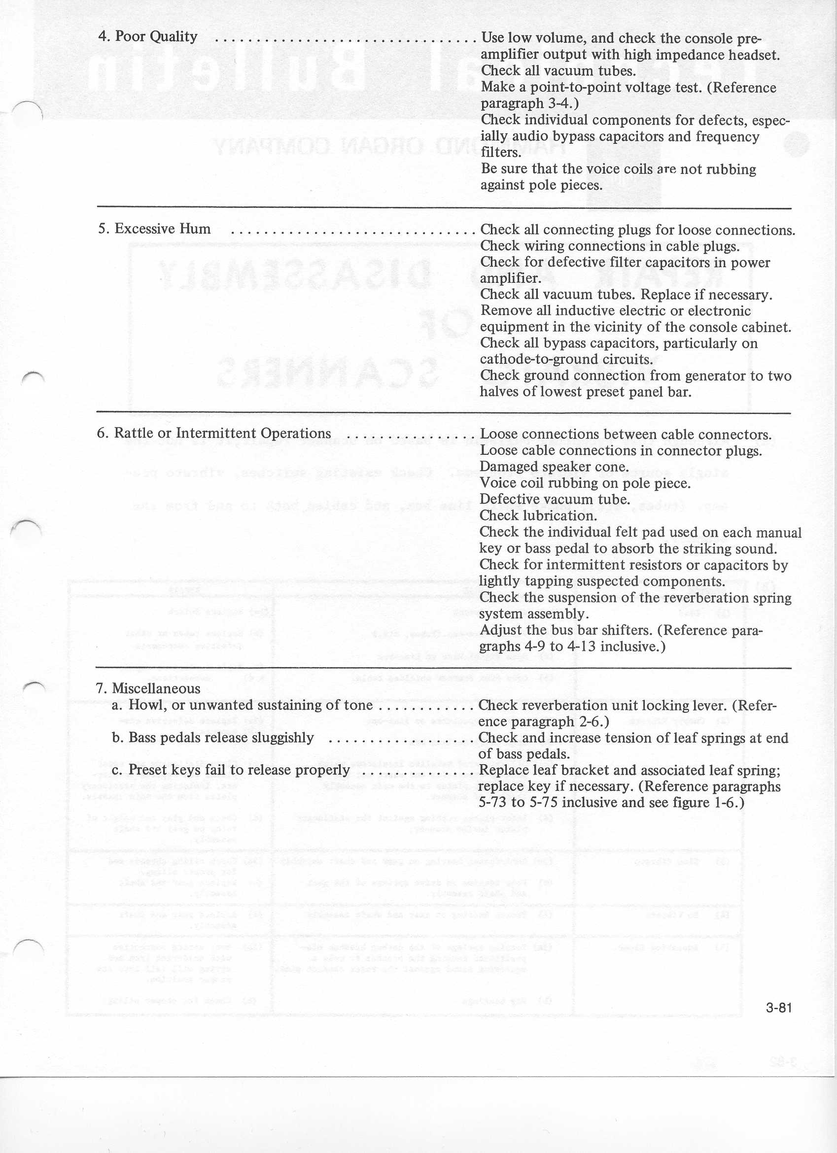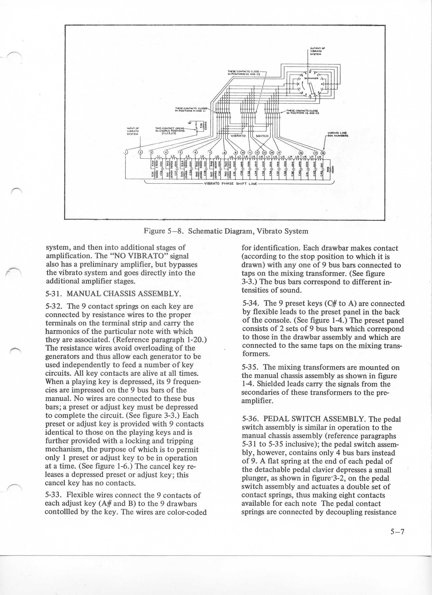 , 3-81fig 3-4 location of filters on Tone Gen, fig 3-5 generator magnet locations 3-79 Repair & Disassembly of Vibrato Scanner 3-82, 3-83, 3-84, 3-85 SECTION IV - ALIGNMENT PROCEDURES (thumbnails 14) Preset Panel Tone
