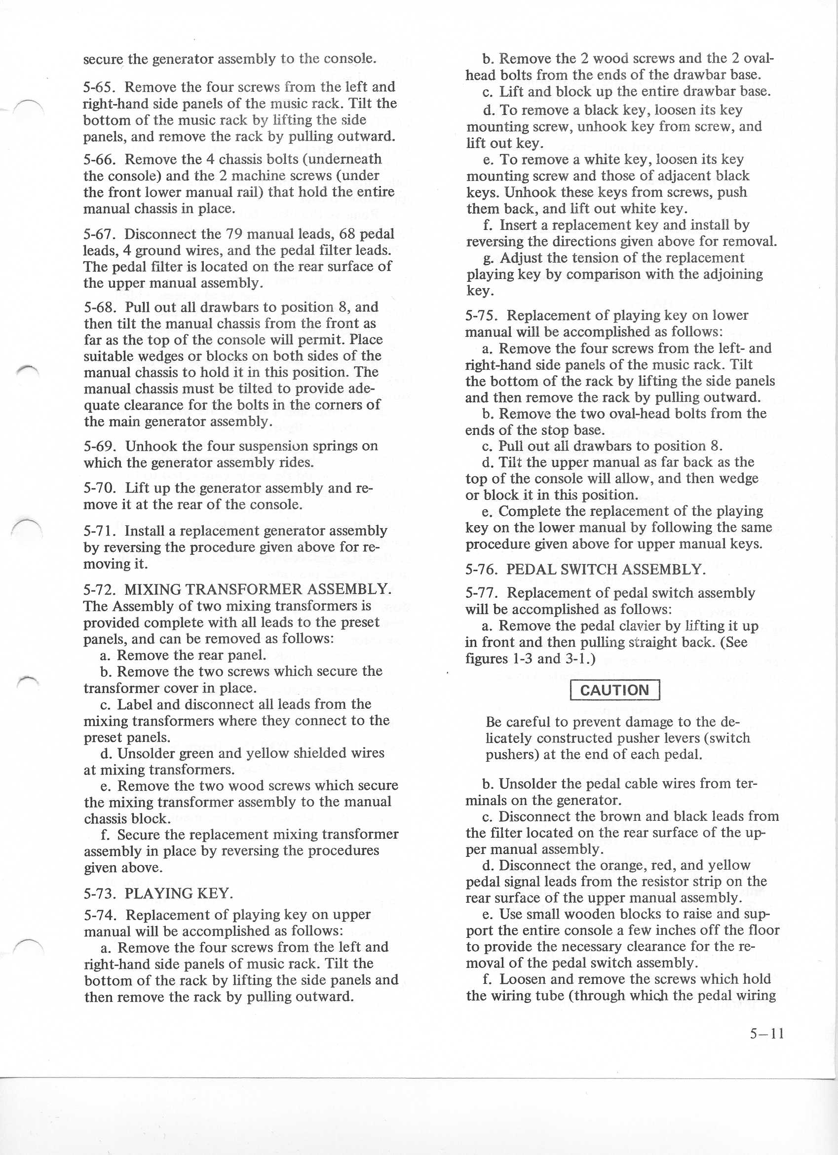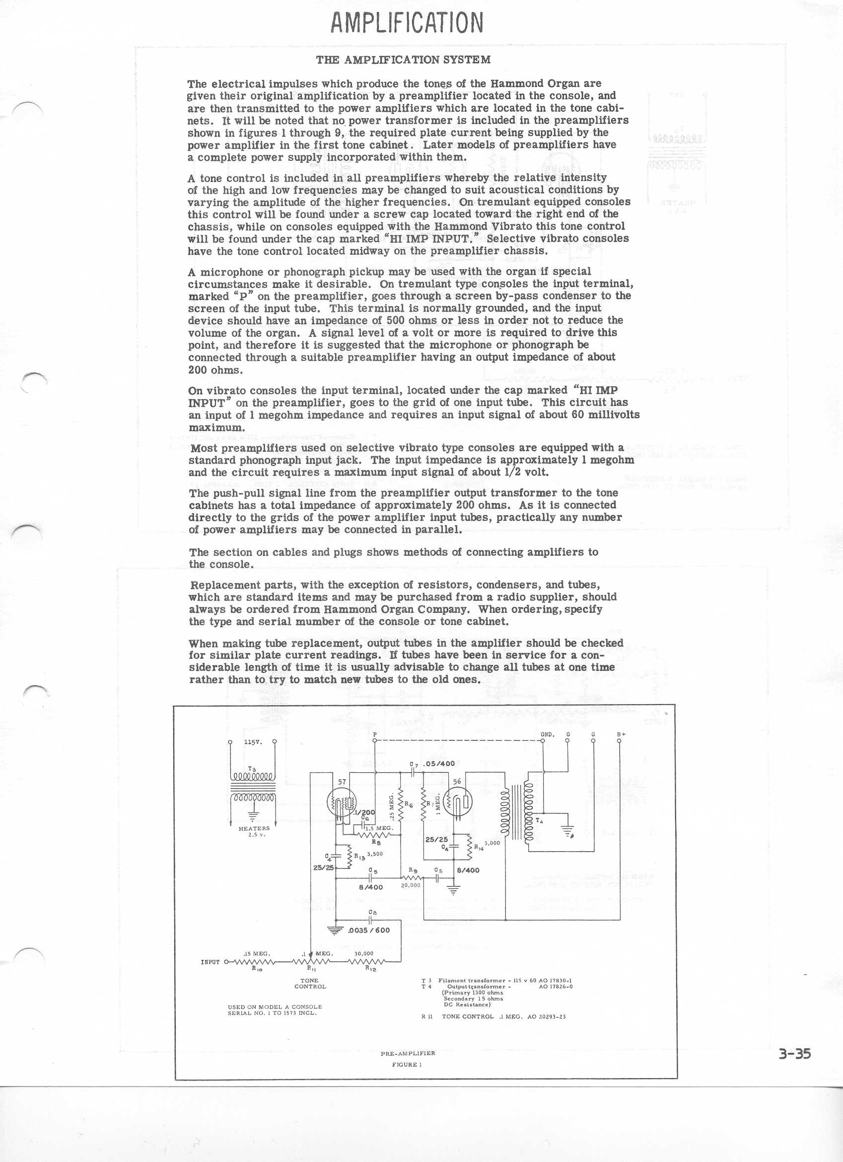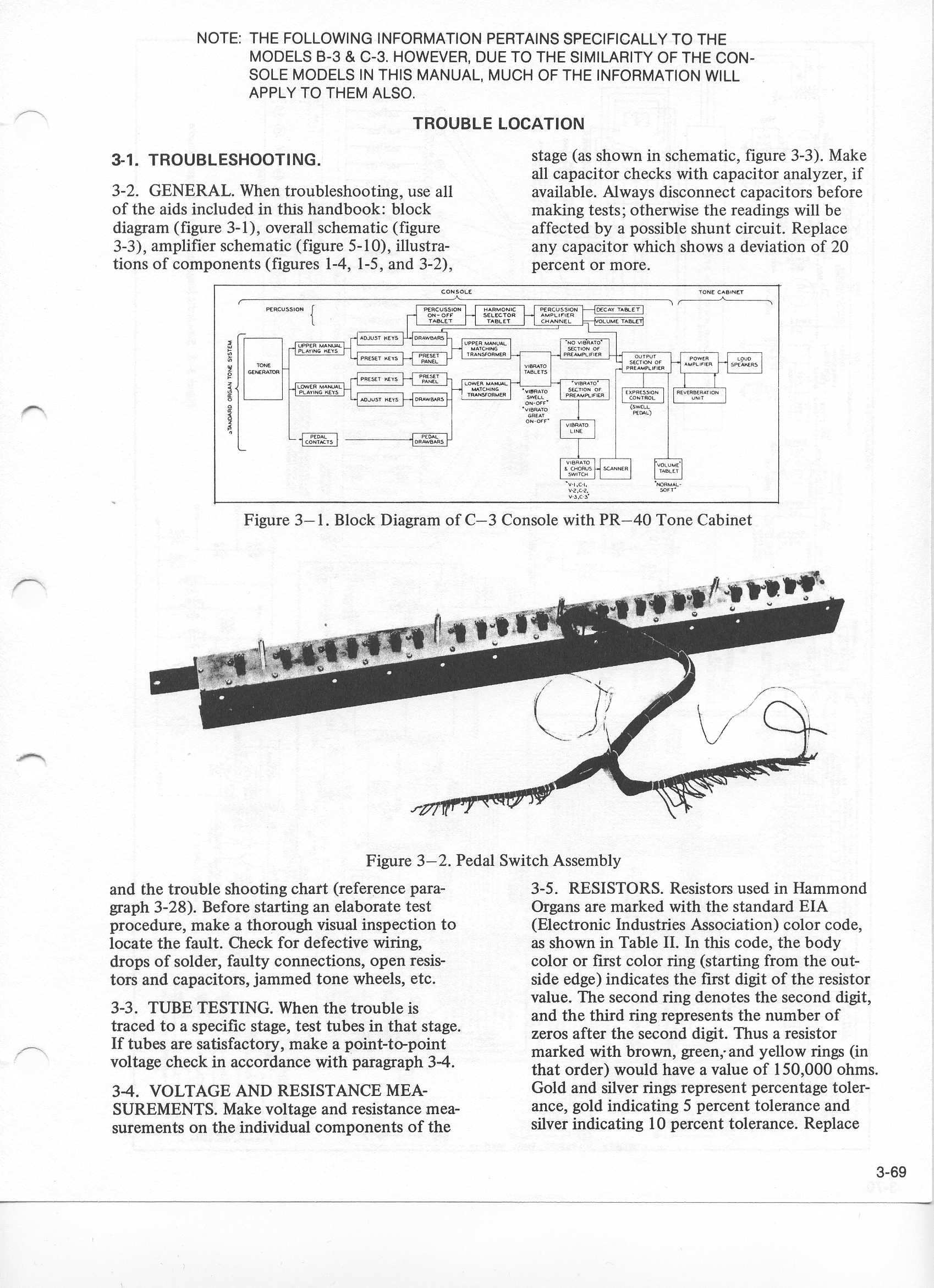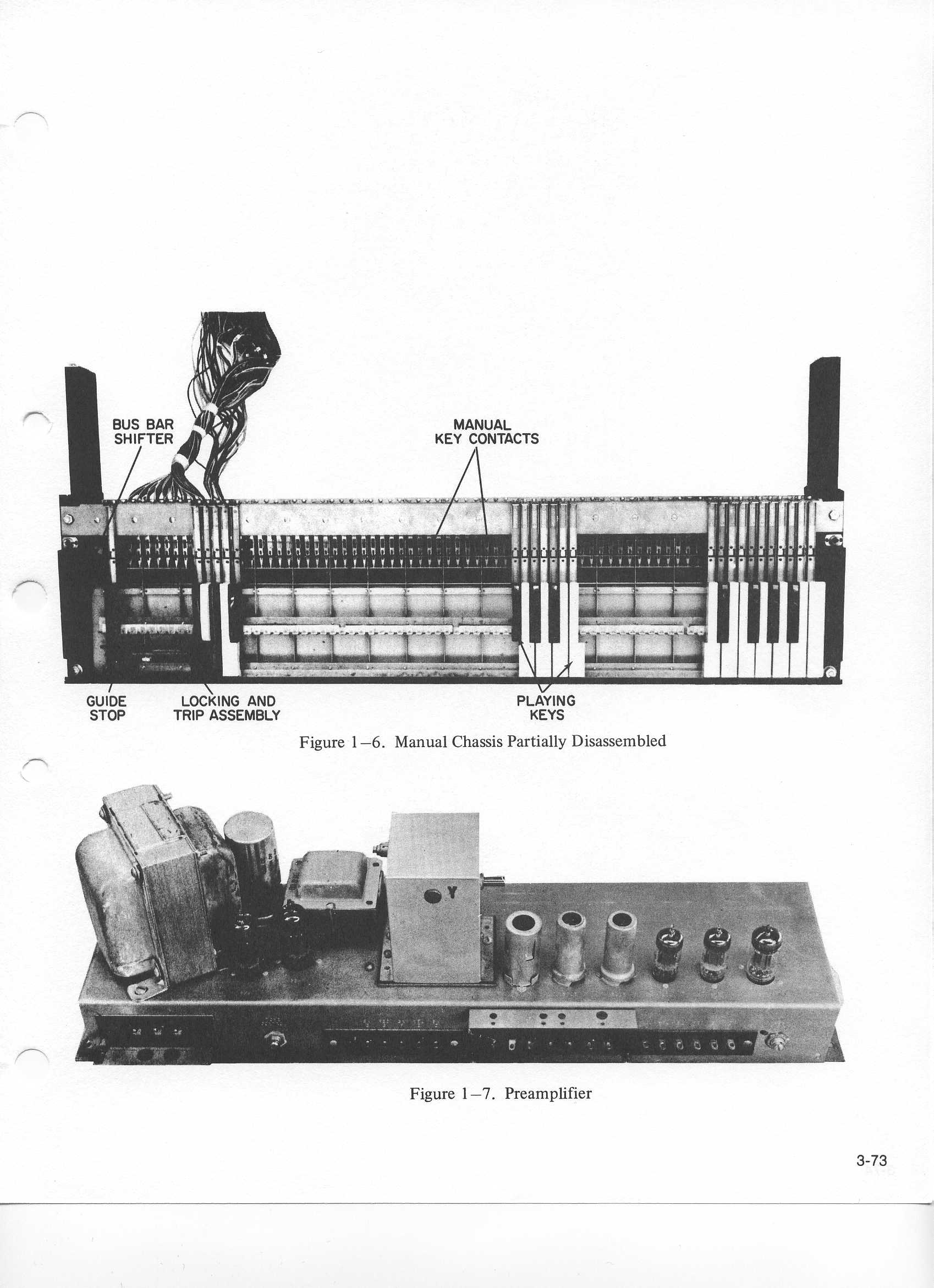 rear view of console C3 3-71 figure 1-5 tone generator 3-72 fig 1-6 manual chassis partially disassembled 3-73 fig 1-7 preamplification table