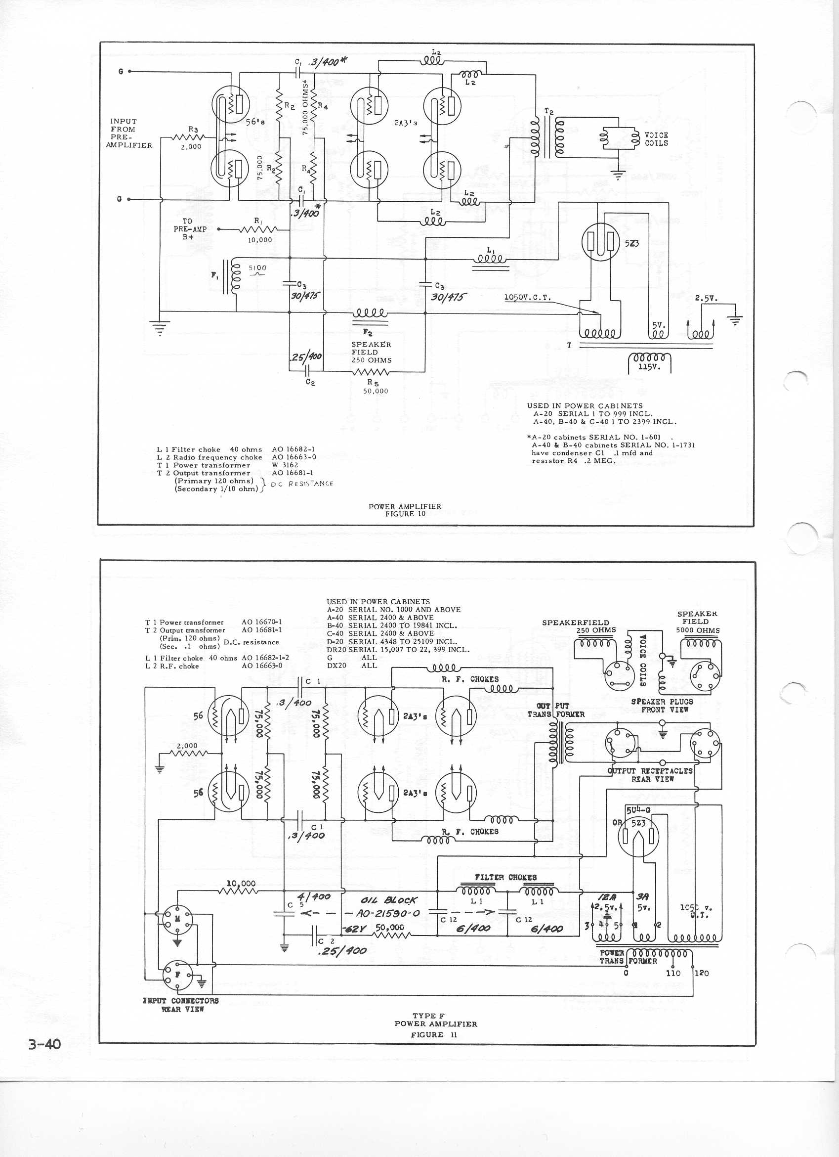 AMPLIFIER SCHEMATICS (USED IN TONE CABINETS) Models A-20, A-40, B-40, C-40