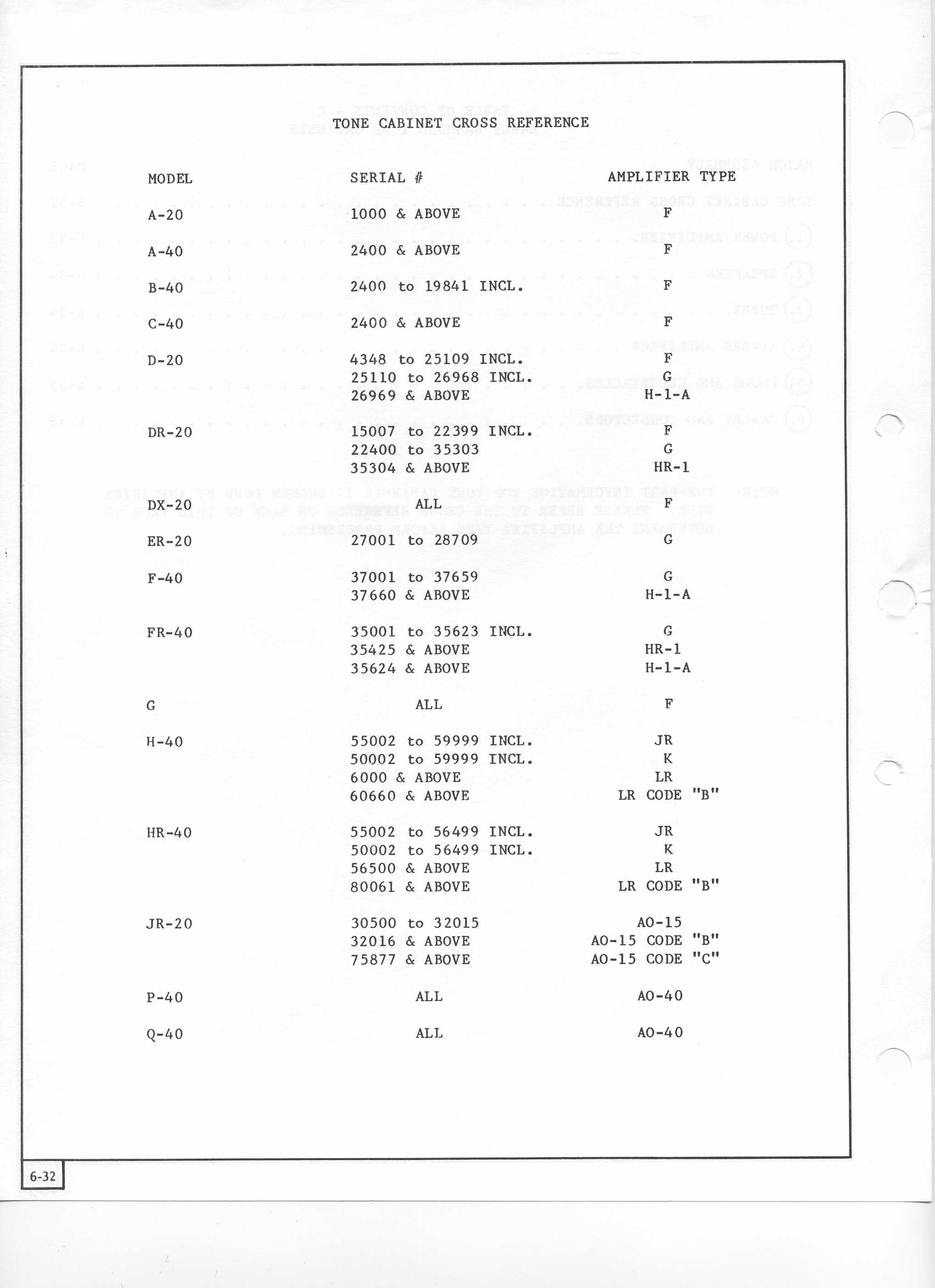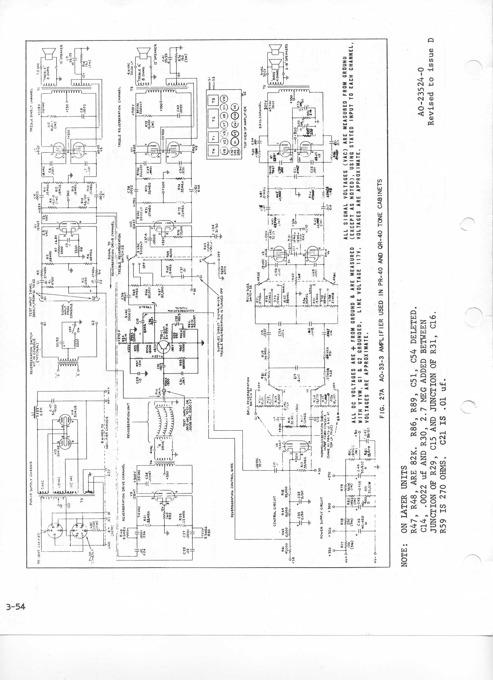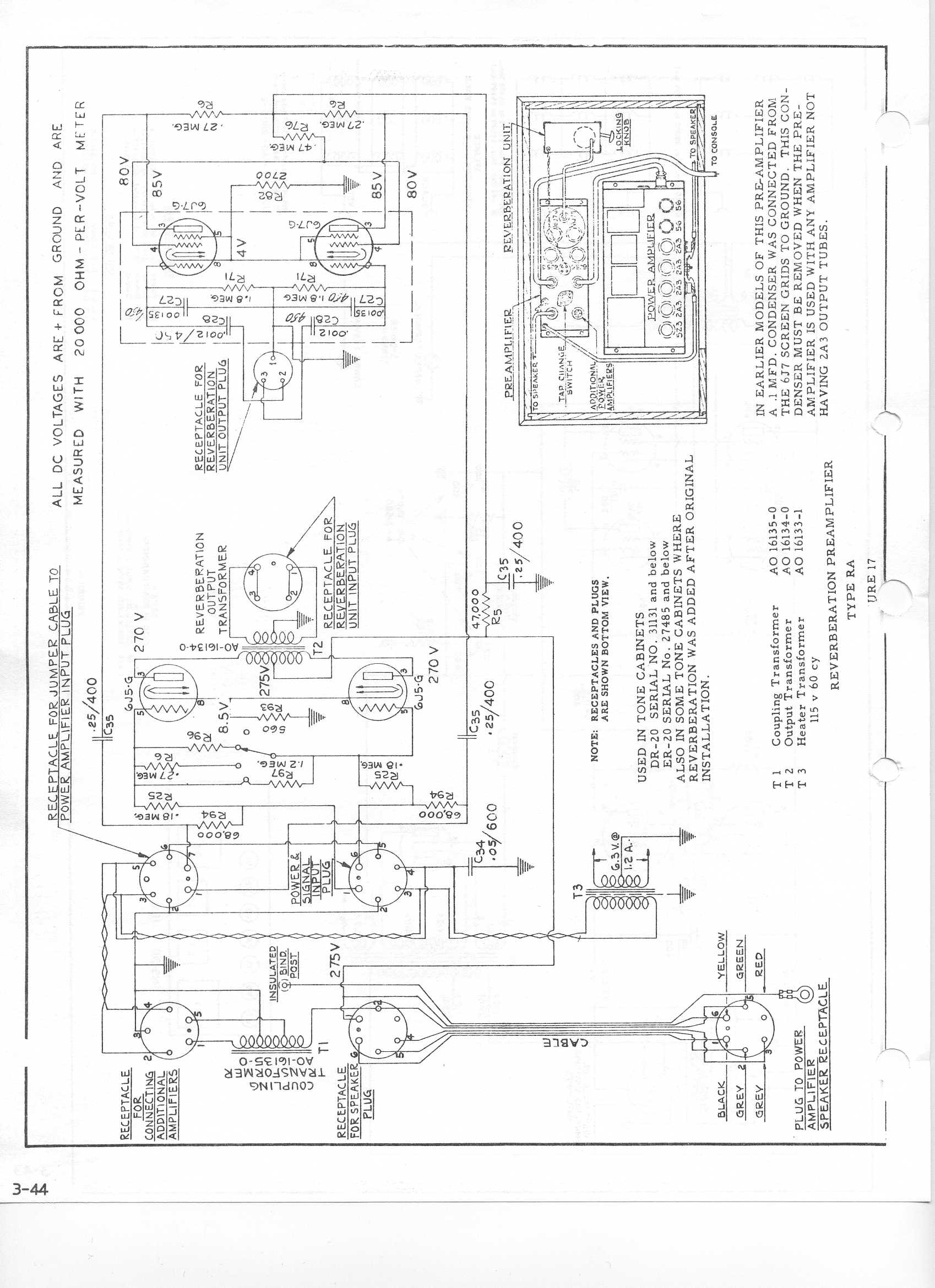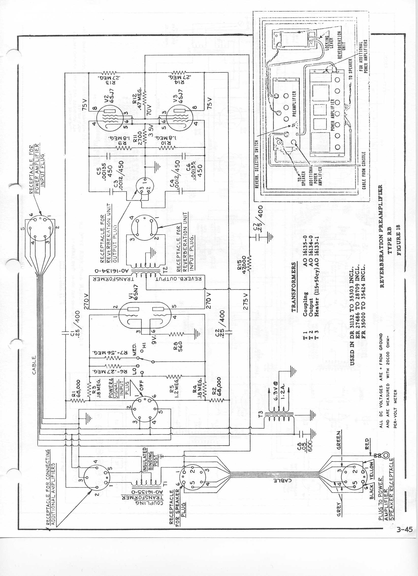 REVERB PRE-AMPLIFIERS SCHEMATICSModels A-20, A-40, B-40, C-40; D-20, DR-20, G, DX-20 (Figure 11) 3-40 Models D-20, DR-40, B-40, ER-20, FR-20, F-40 (Figure 12) 3-41 Models D-20, F-40, FR-40 (Figure 13) 3-41 Models DR-20, ER-20, F-40 (Figure 14) 3-42 Models H-40, HR-40 (Figure 15) 3-42 (Figure 16) 3-43 Models DR-20, ER-20 (Figure 17) 3-44 Models DR-20, ER-20, FR-40 (Figure 18) 3-45 POWER AMPLIFIER SCHEMATICS (USED IN TONE CABINETS) PRE-AMPLIFIERS SCHEMATICS POWER AMPLIFIER SCHEMATICS (USED IN TONE CABINETS) PRE-AMPLIFIERS SCHEMATICS Models B-3, C-3, RT-3 (Figure
