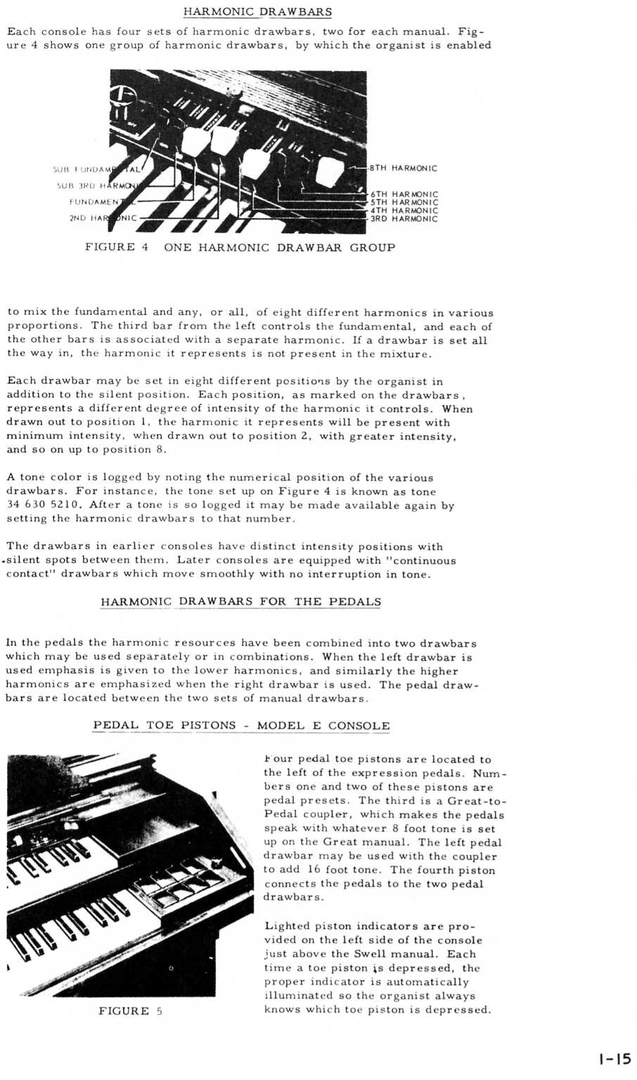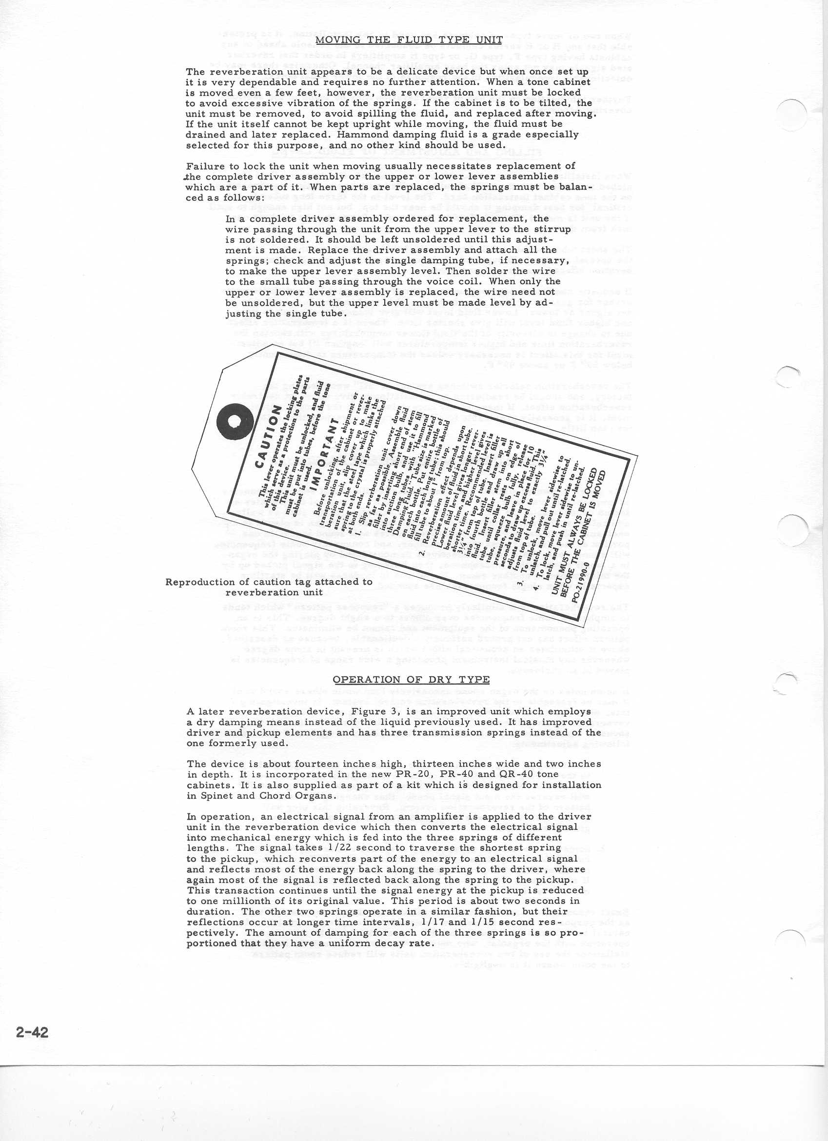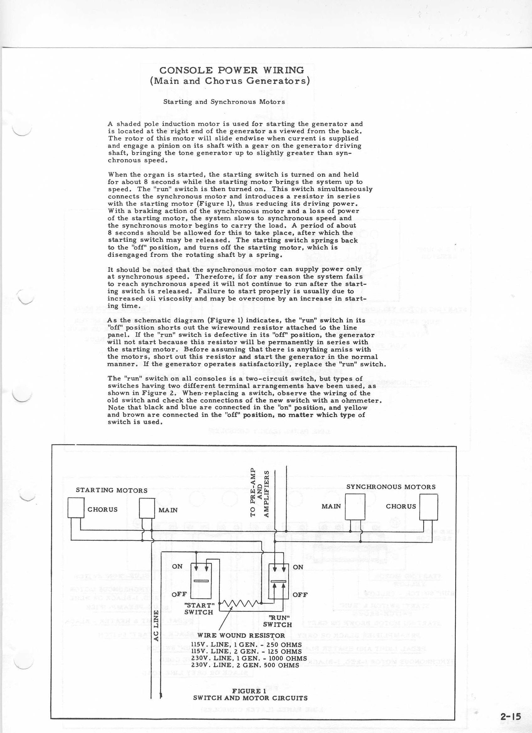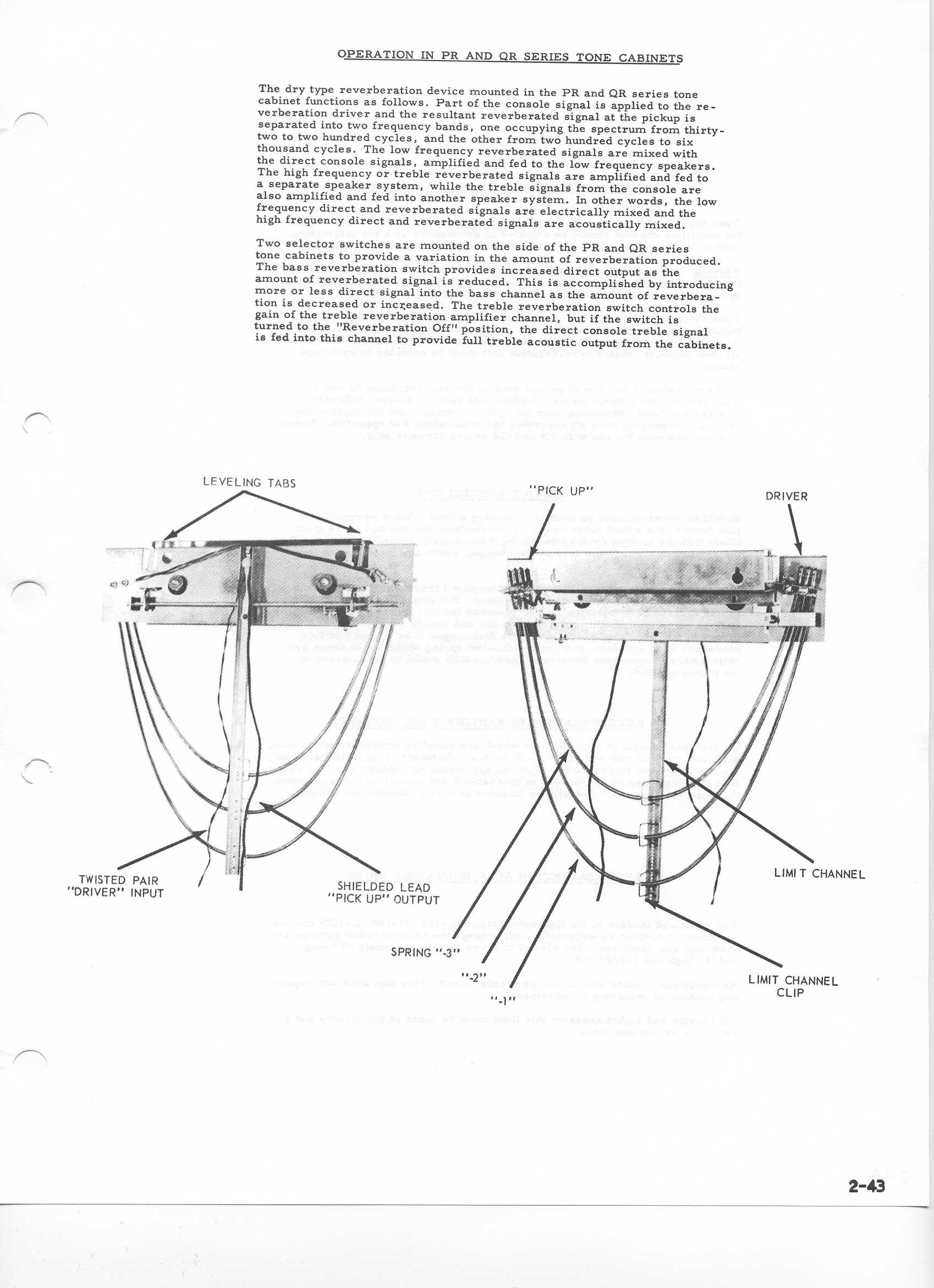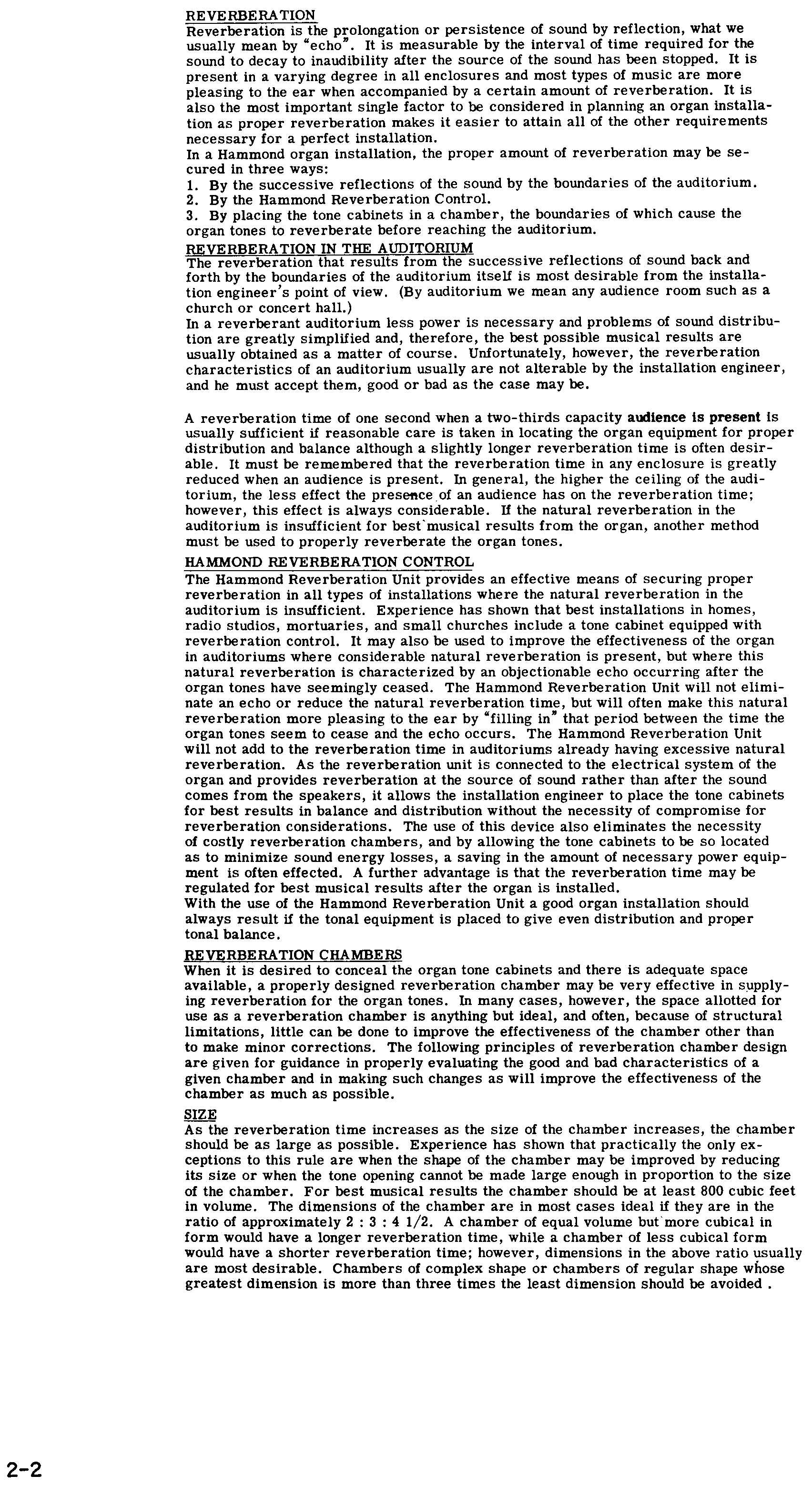 Preset Keys 1-14 Pedal Toe Pistons (model E Console) 1-15 Models RT, RT-2, RT-3 & D-100 Echo Switch 1-16 Tremulant Precussion 1-17 Tone Generator Tone Cabinets 1-18 Power Amplifier Reverberation System 1-19 SECTION II - INSTALLATION, MAINTENANCE AND TECHNICAL INFORMATION (thumbnails 4) ACOUSTICS 2-1 INSTALLATION & MAINTENANCE CABLES 2-4 MAIN GENERATOR (FIGURE 1) (thumbnails 5) 91 Frequency
