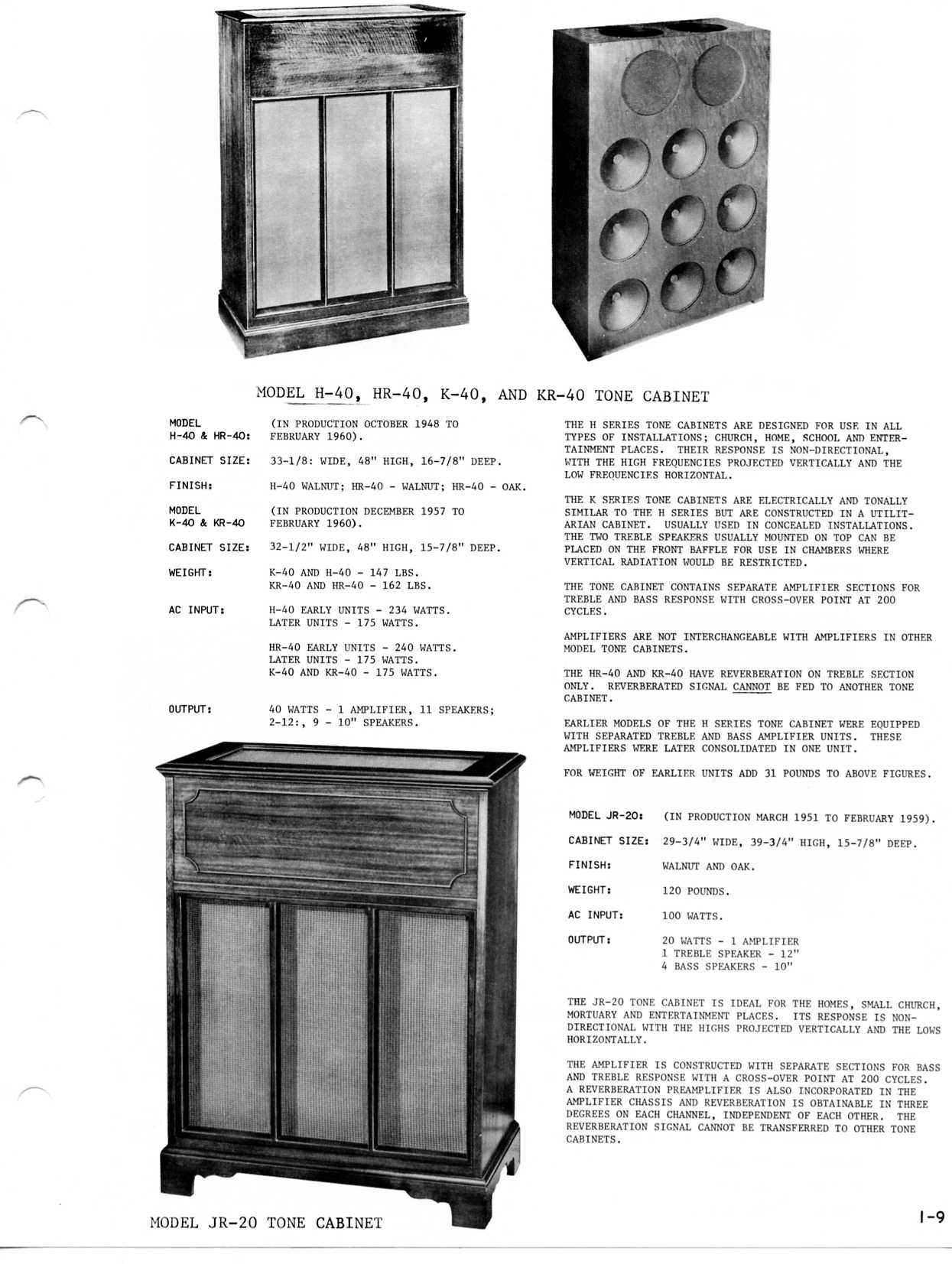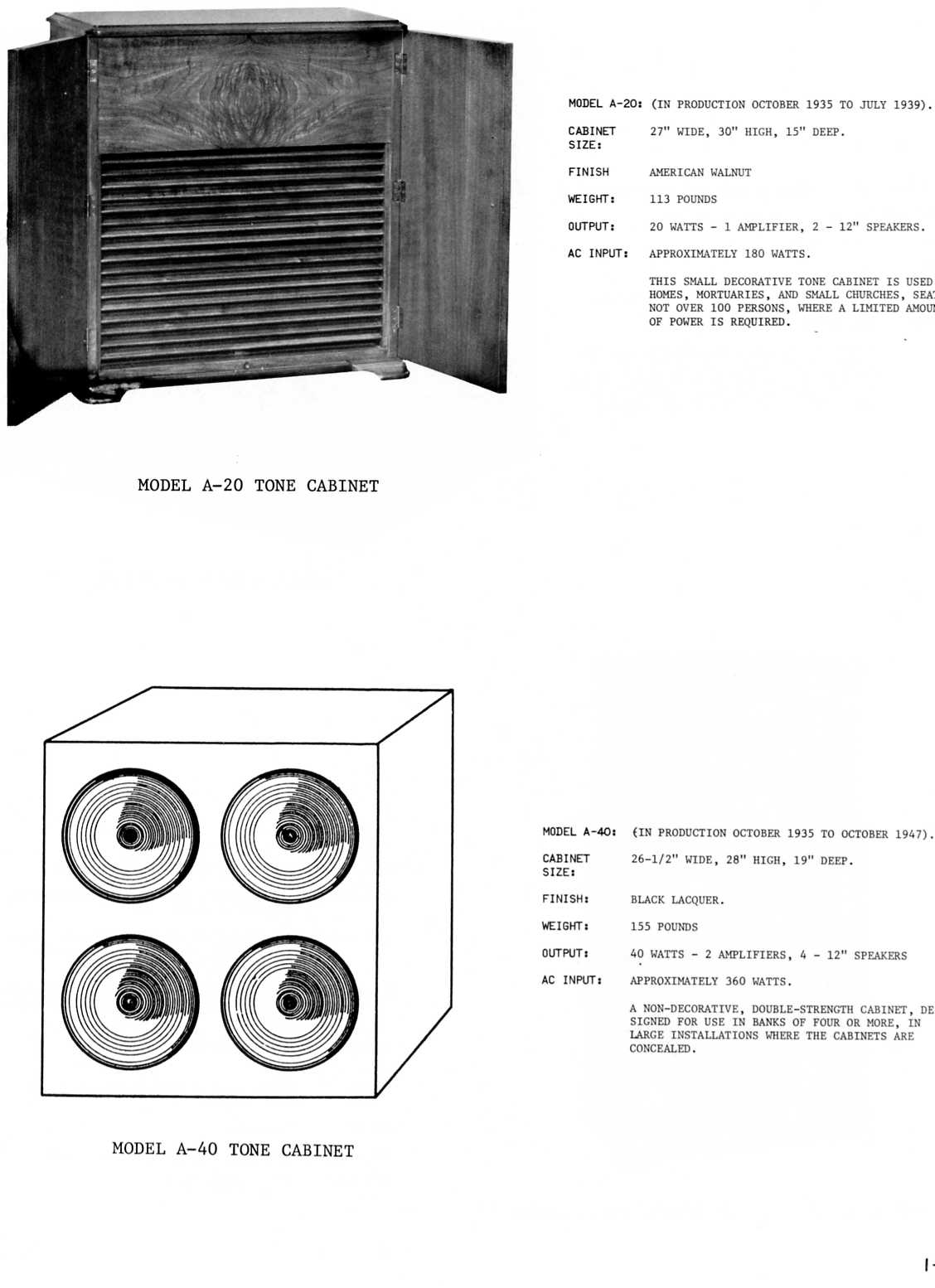 | SECTION I GENERAL - A BRIEF DESCRIPTION AND SOME ILLUSTRATIONS OF THE FOLLOWING MODEL ORGANS AND TONE CABINETS ORGANS PAGE (thumbnails 1) Models - A, AB