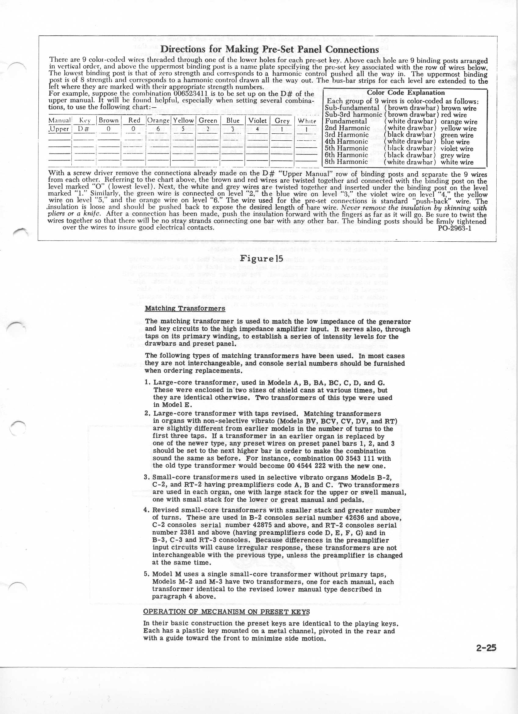 Models B-2, B-3, C-2, C-3, RT-2, RT-3, A-100, D-100, E 2-24 Charts (Figure 15) Matching Transformers 2-25 Preset Cradle (Figure 16) 2-26 TREMULANT (thumbnails 7) Models A, AB, BC, C, D & G