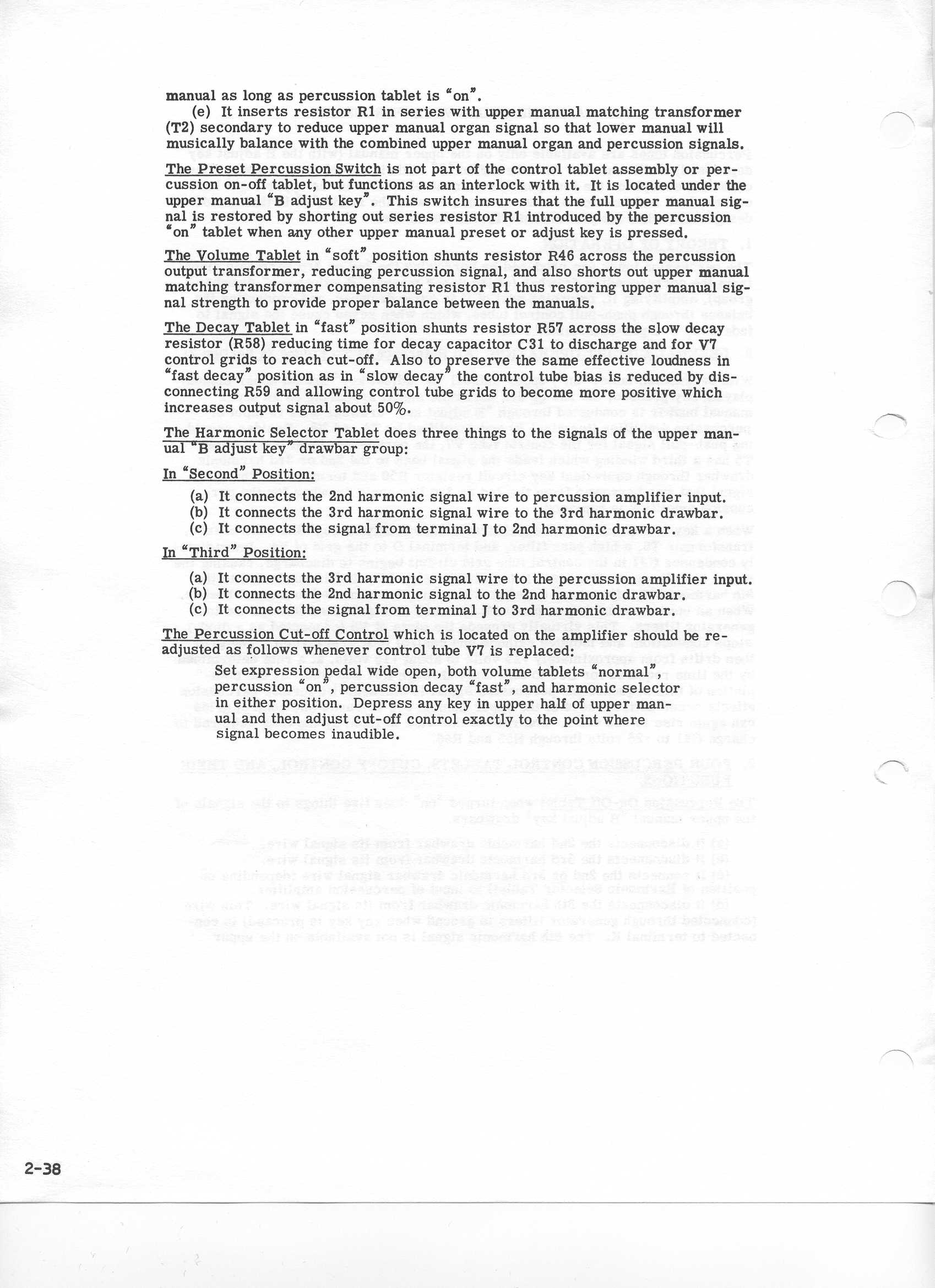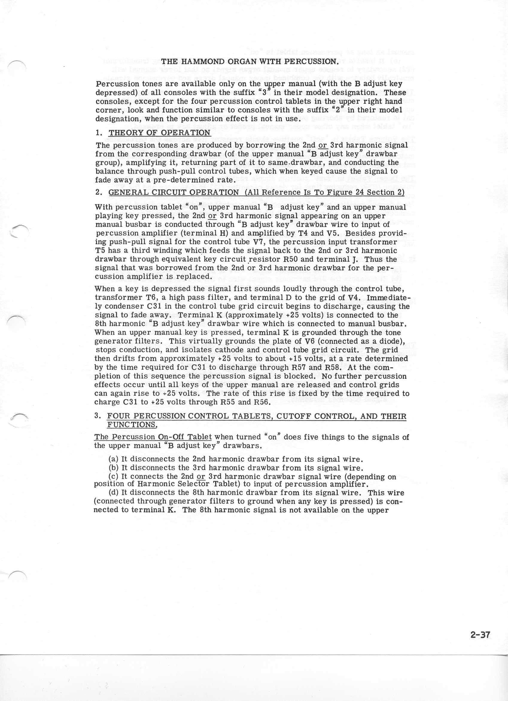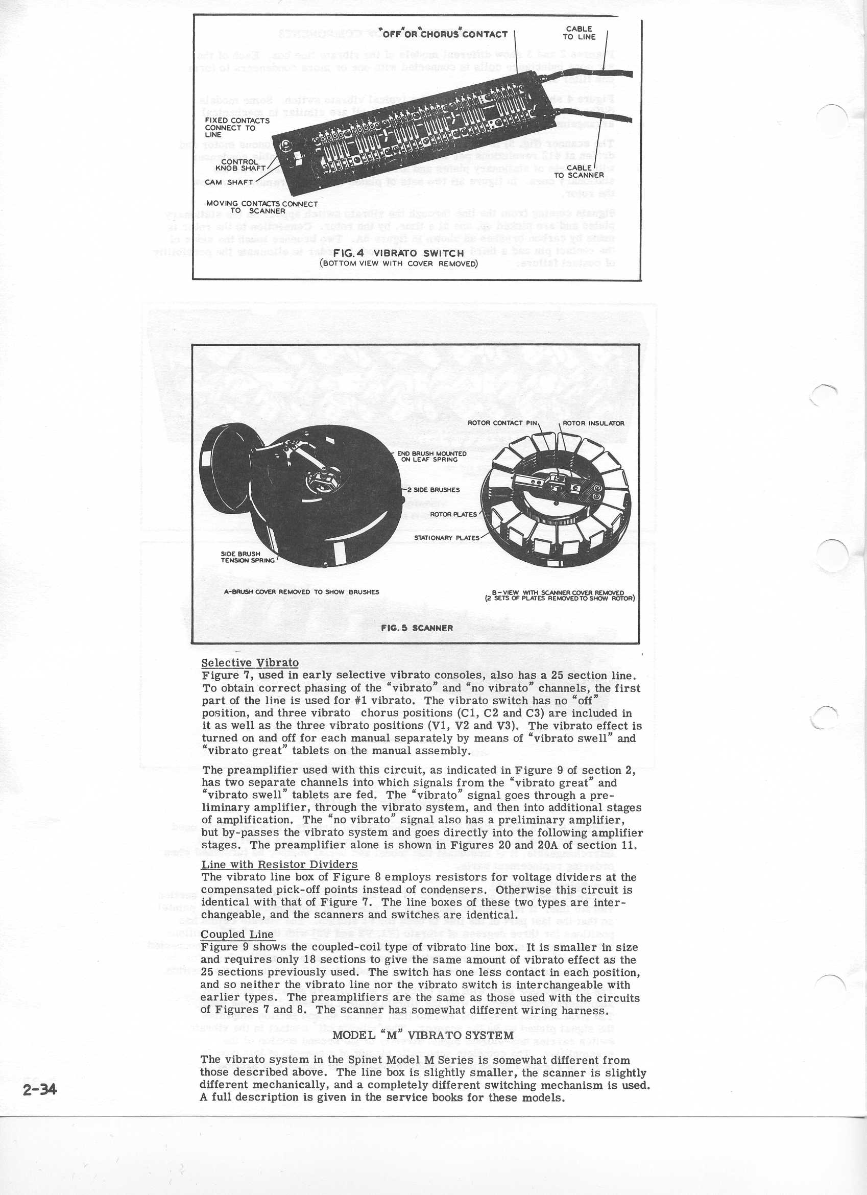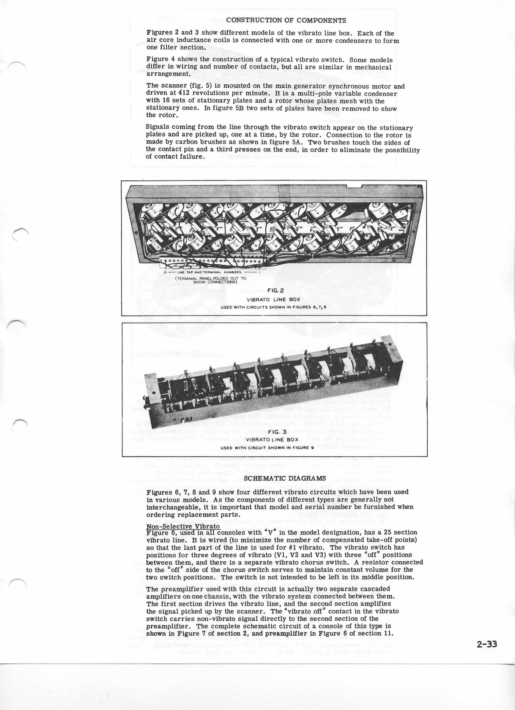 Line Box (Figure 2&3) 2-33 Vibrato Switch (Figure 4) 2-34 Scanner (Figure 5) 2-34 Model M 2-34 Schematics (Figure 6 thru 9) 2-35, 2-36 PERCUSSION (thumbnails 8) REVERBERATION |